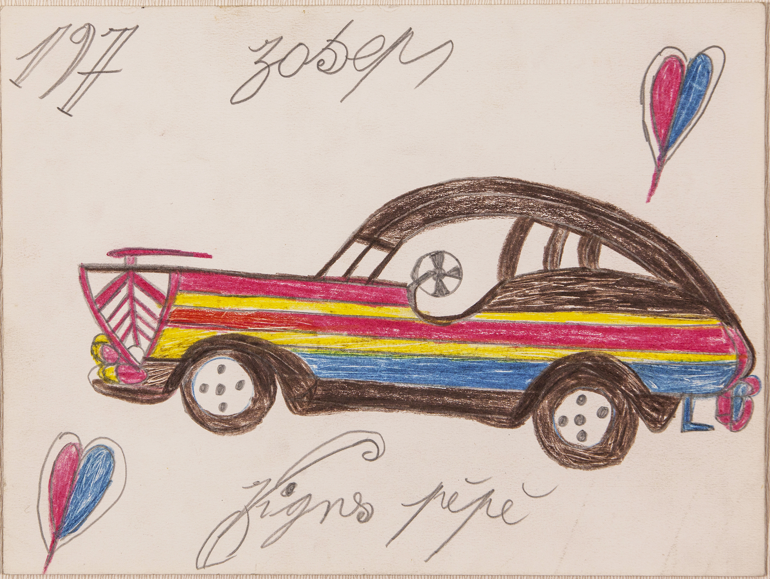 En 1960, il commence à dessiner au stylo, au crayon, puis au feutre. Sa forte myopie est peut-être à l’origine de ce trait si particulier. Il réalise près de trois mille dessins destinés « à ceux qui n’ont pas eu de bon point à l’école », et développe un univers candide et joyeux d’où émane une poésie du quotidien, fleurs, poissons, coeurs, engins à moteur et… gazinières.